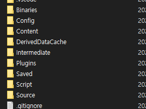 C++ 클래스를 사용하는 경우 Binaries 폴더가 생기는데 이는 C++ 코드를 컴파일 시킨 결과들을 저장하게 된다. 제거해도 빌드할 때 마다 생성되니깐 컴파일 시 문제가 있다면 이 폴더를 삭제하고 다시 빌드하는 것도 방법이다.