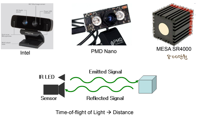 Kinect V1은 Time of Flight 사용한다.