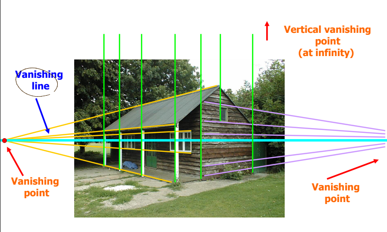 평행한 직선은 원근법에 의해 image 상에서 소실점이 생긴다.